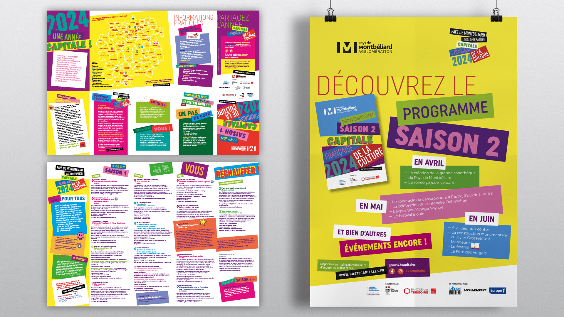 Créatrice de la signature « nos73capitales », qui devient la marque de fierté de ce territoire industriel, du logo et de l’identité graphique de l’année Capitale, l’agence a rédigé et produit l’ensemble des supports de communication :