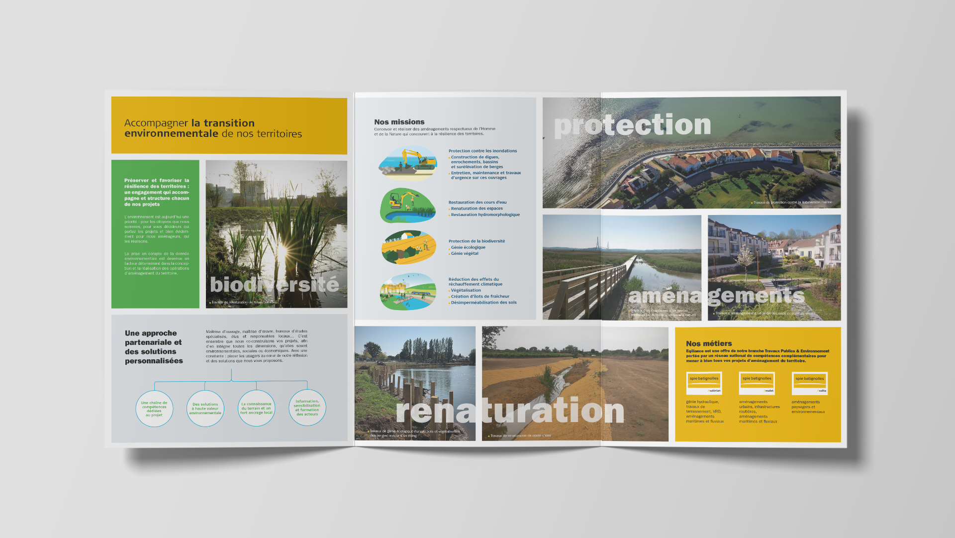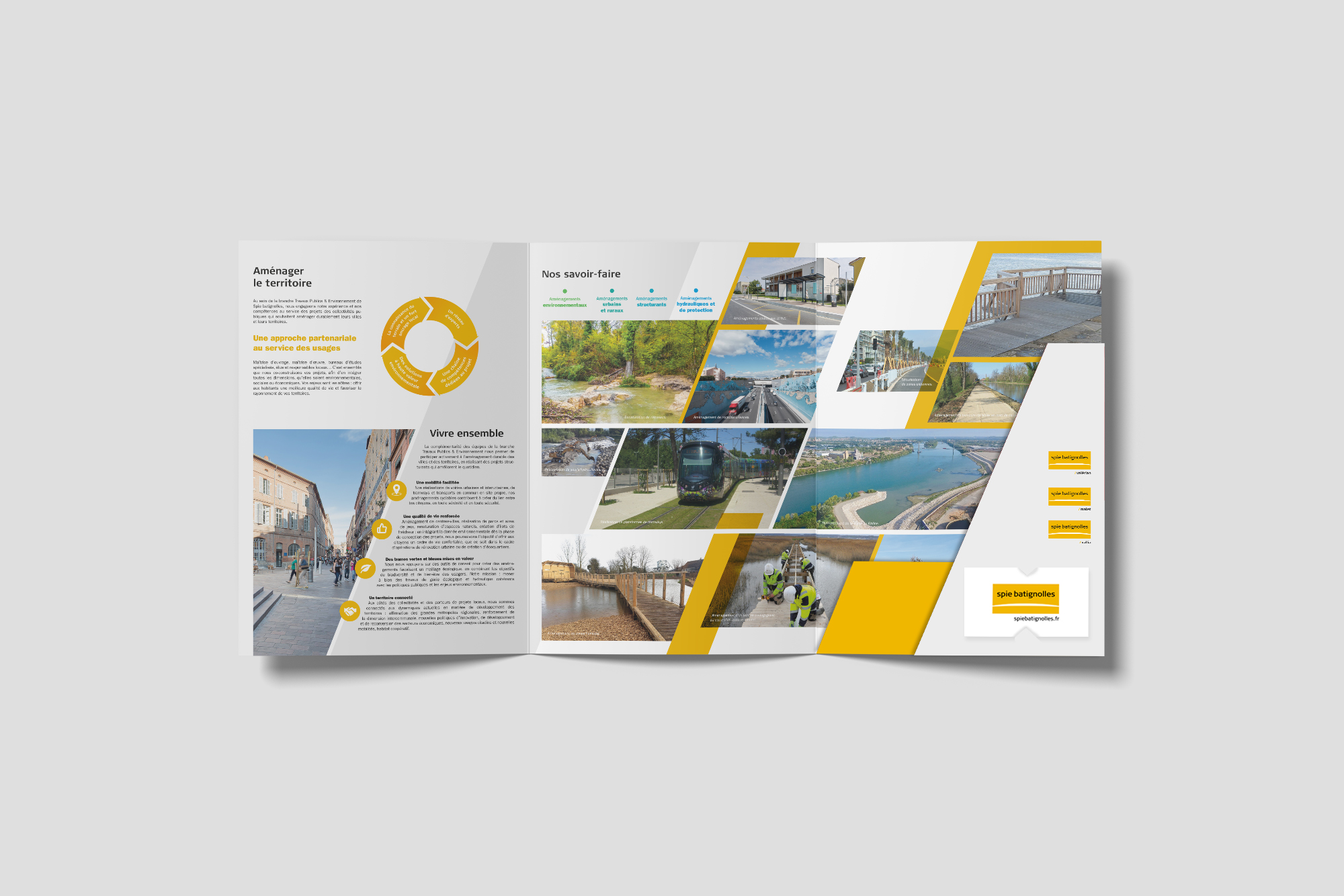 Spie batignolles a confié à La Folle Entreprise en 2021 la réalisation de deux plaquettes présentant :